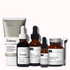 Un conjunto de rutina diaria de cuidado de la piel de cinco productos.
